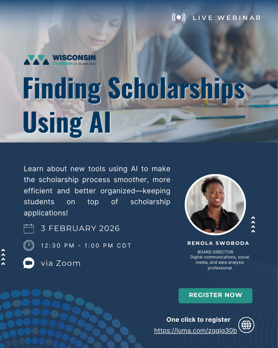The Wisconsin Coalition on Student Debt works with our coalition partners to advance one common agenda: helping Wisconsin residents become student debt smart and financially stable. Coalition members receive no financial benefit from their work to advance our mission.