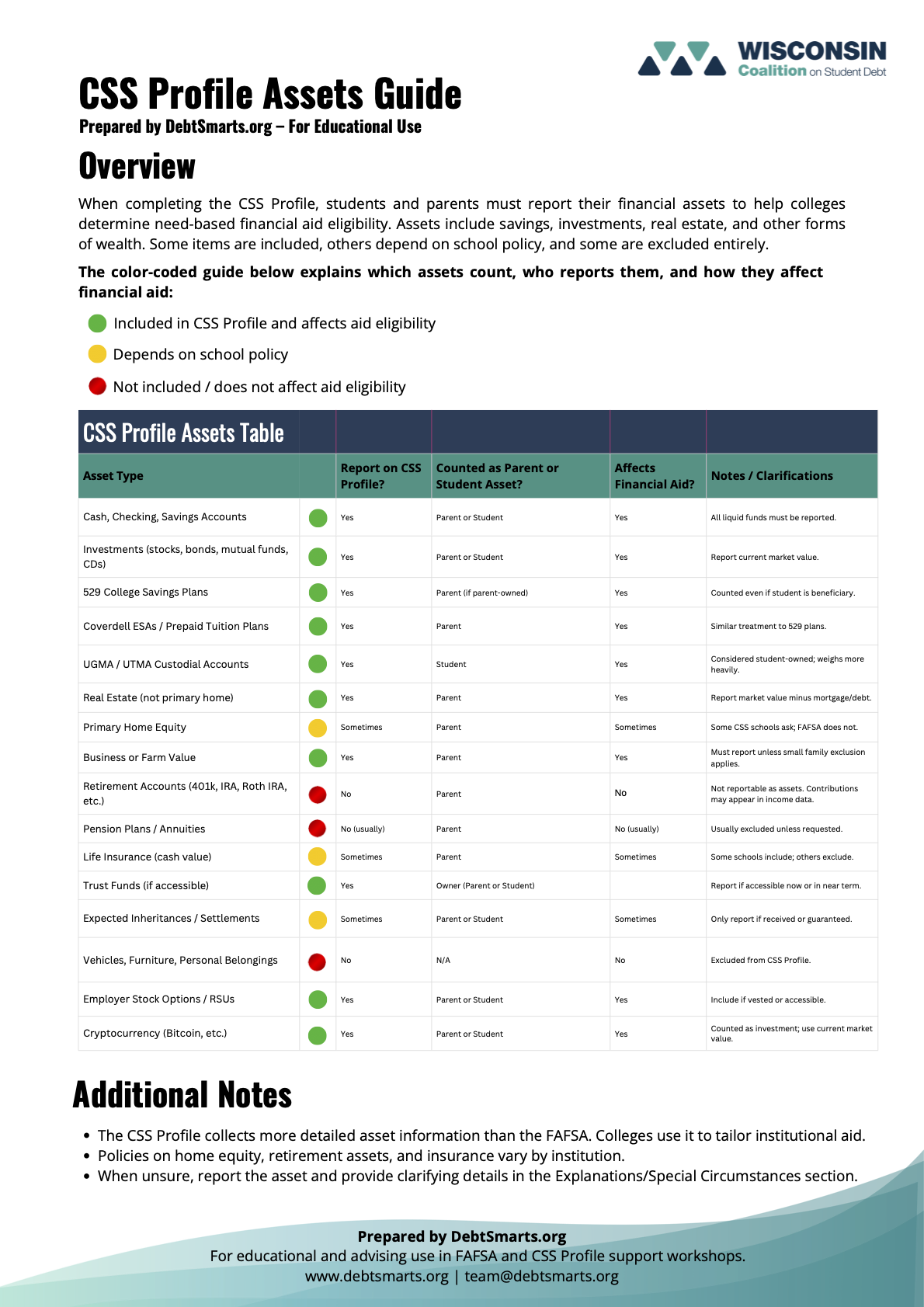 New This year, financial aid applicants to the University of Wisconsin-Madison must complete the CSS Profile. We’ve prepared this one-page reference sheet to help you understand what assets need to be reported.
